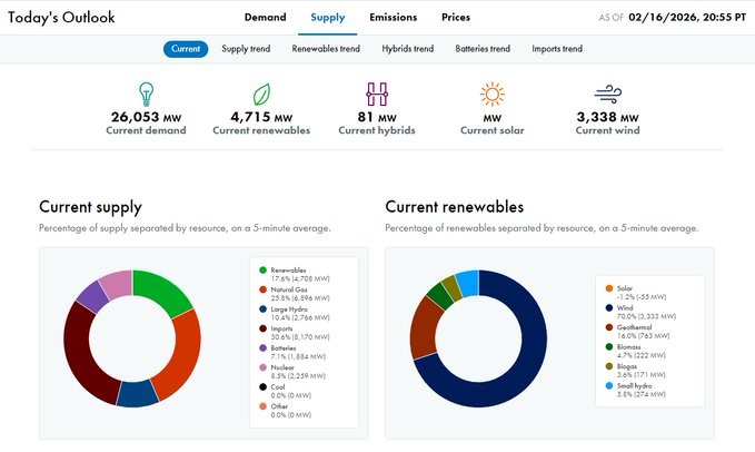 natural gas and imports are keeping the lights on, but batteries are fading fast.