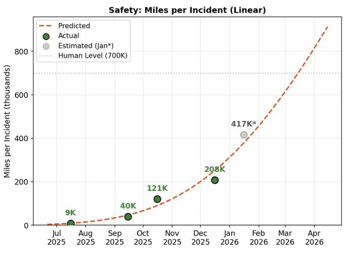 **Key Insight:** Tesla's Robotaxi fleet in Austin, Texas reportedly saw a significant improvement in safety between December 2025 and January 2026.