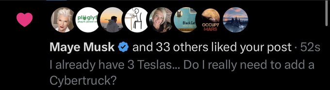 **Key Insight:** "Momma Musk liked this post so I may have to pull the trigger on a CT..."