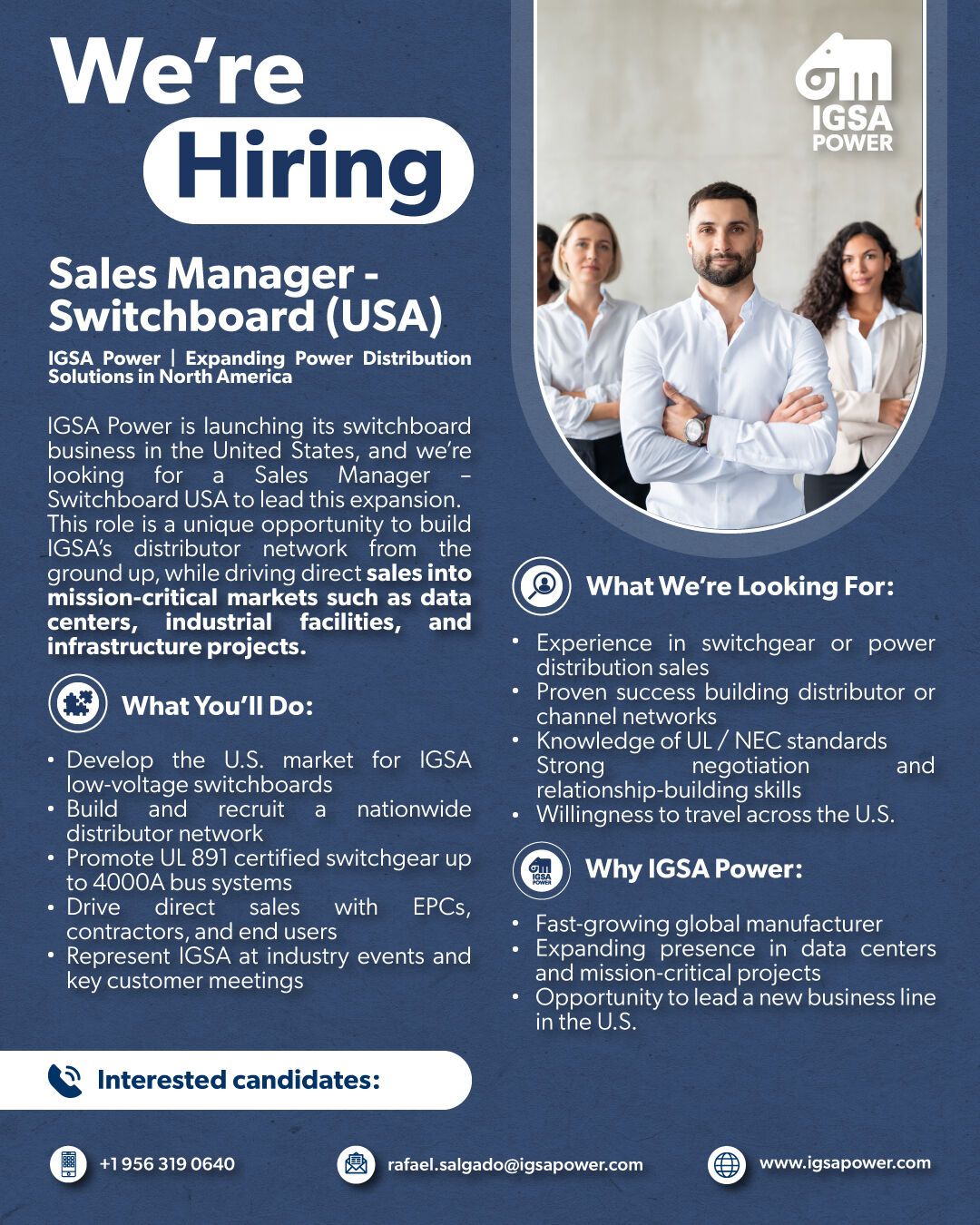 **Key Insight:** IGSA Power is looking to expand its switchboard business in the U.S. by hiring a Sales Manager to lead this expansion and build its distributor network from the ground up.