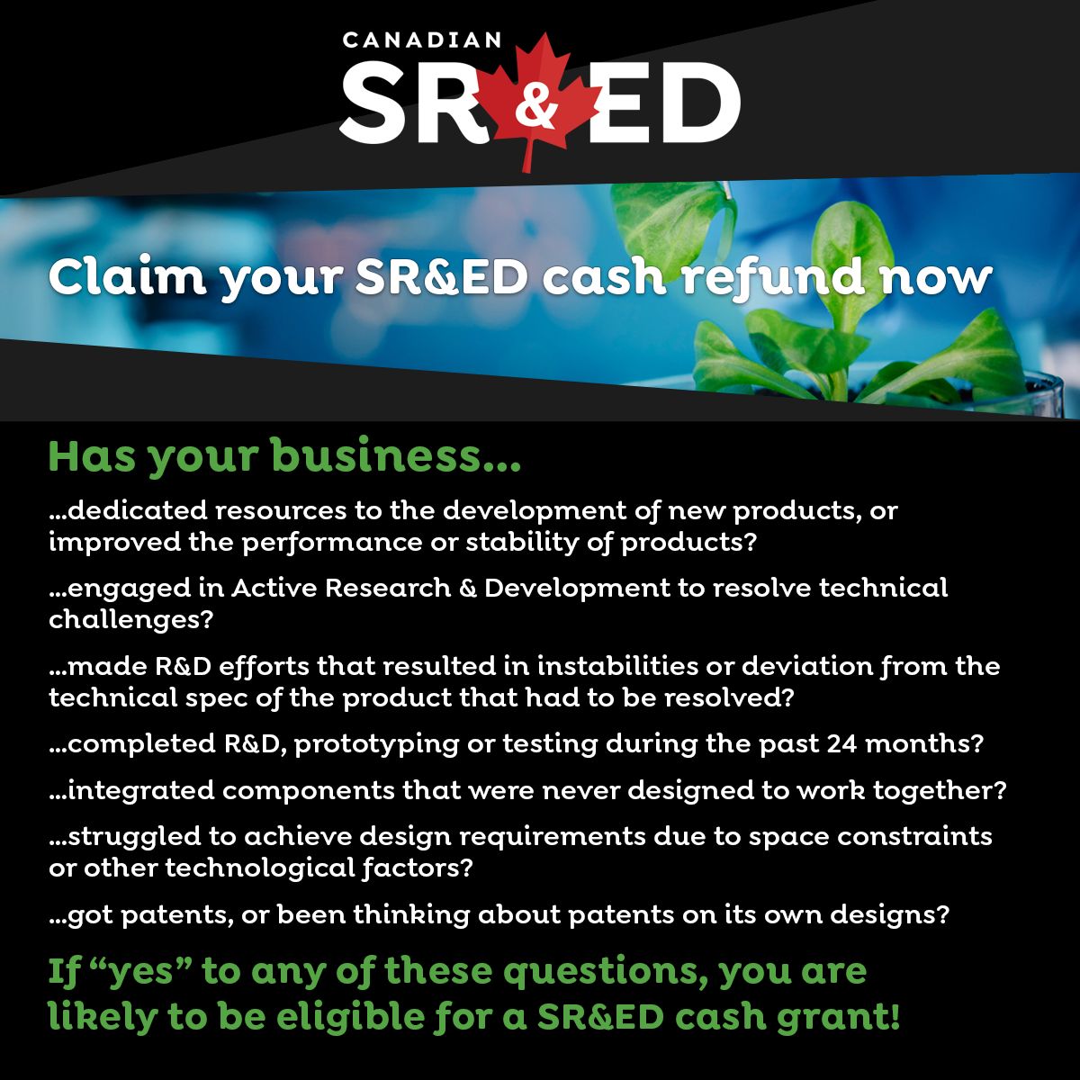 **Key Insight:** The article discusses the Canadian government's R&D Government Cash Grants program, which provides up to 65% reimbursement for qualifying R&D expenses. However, it highlights a common misconception among businesses that they are not eligible for these cash refunds.