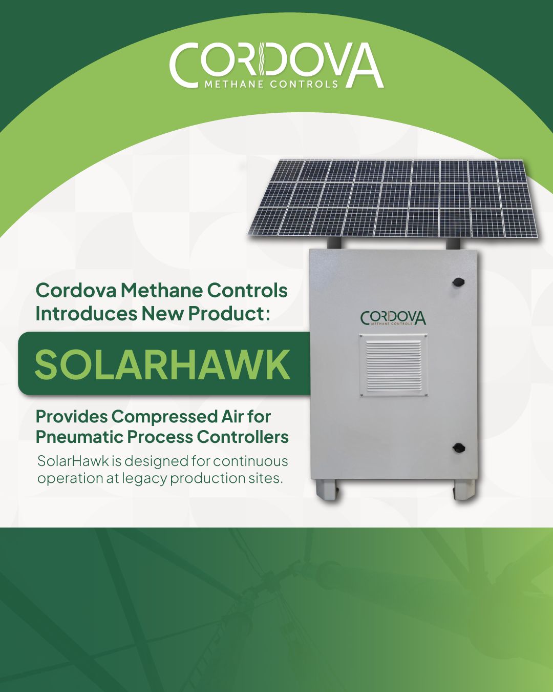 **Key Insight:** SolarHawk is a reliable solution for providing compressed air for pneumatic process controllers, especially in Cordova Methane Controls' legacy production sites.