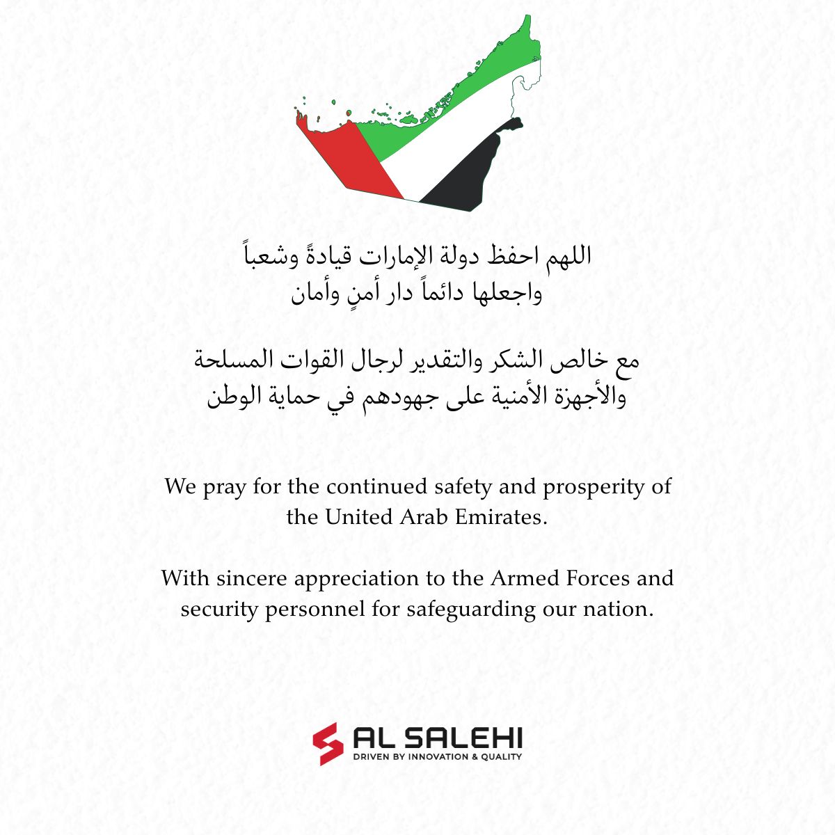 At Al Salehi Machinery & Equipment Repairing LLC, we are grateful to operate in a nation built on stability, security, and unity.