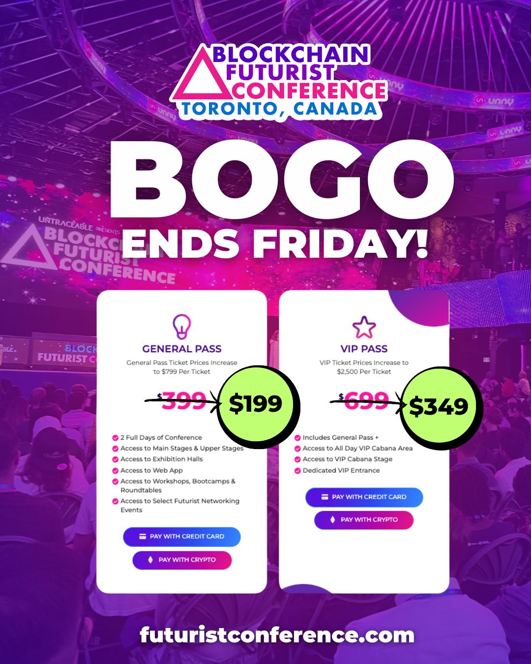 **Key Insight:** The article discusses the end of a promotional offer for Blockchain Futurist Conference tickets on Friday, which could potentially impact the wallets of those who missed out.