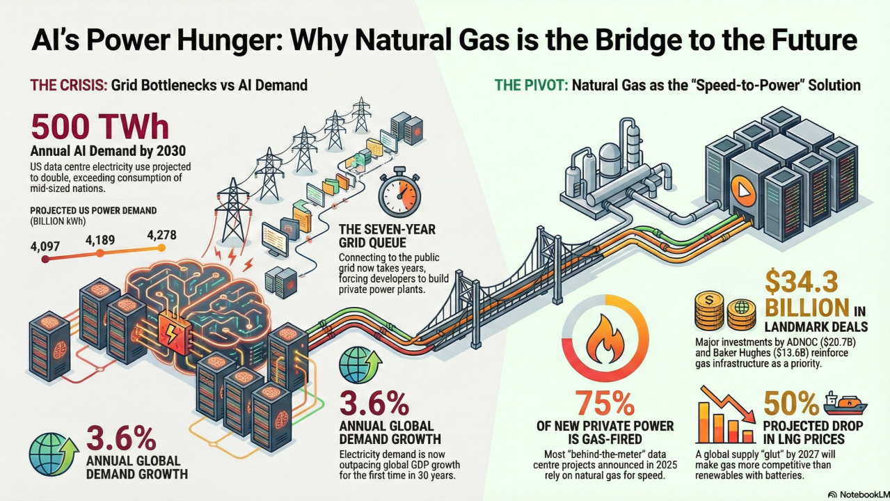 The evidence is everywhere: → Baker Hughes drops $13.6B on Chart Industries → "Well-to-wire" integrated plays linking gas fields directly to data center hubs → Asian buyers locking in 20-year LNG contracts