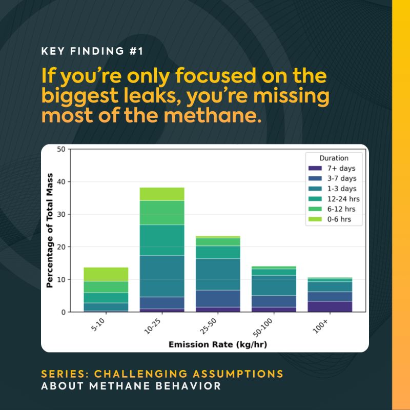 The implication is straightforward. If a methane program optimizes only for the largest leaks, it can still miss most of the emissions. The best strategies address the largest leaks quickly while also reducing the cumulative impact of smaller sources that add up over time.