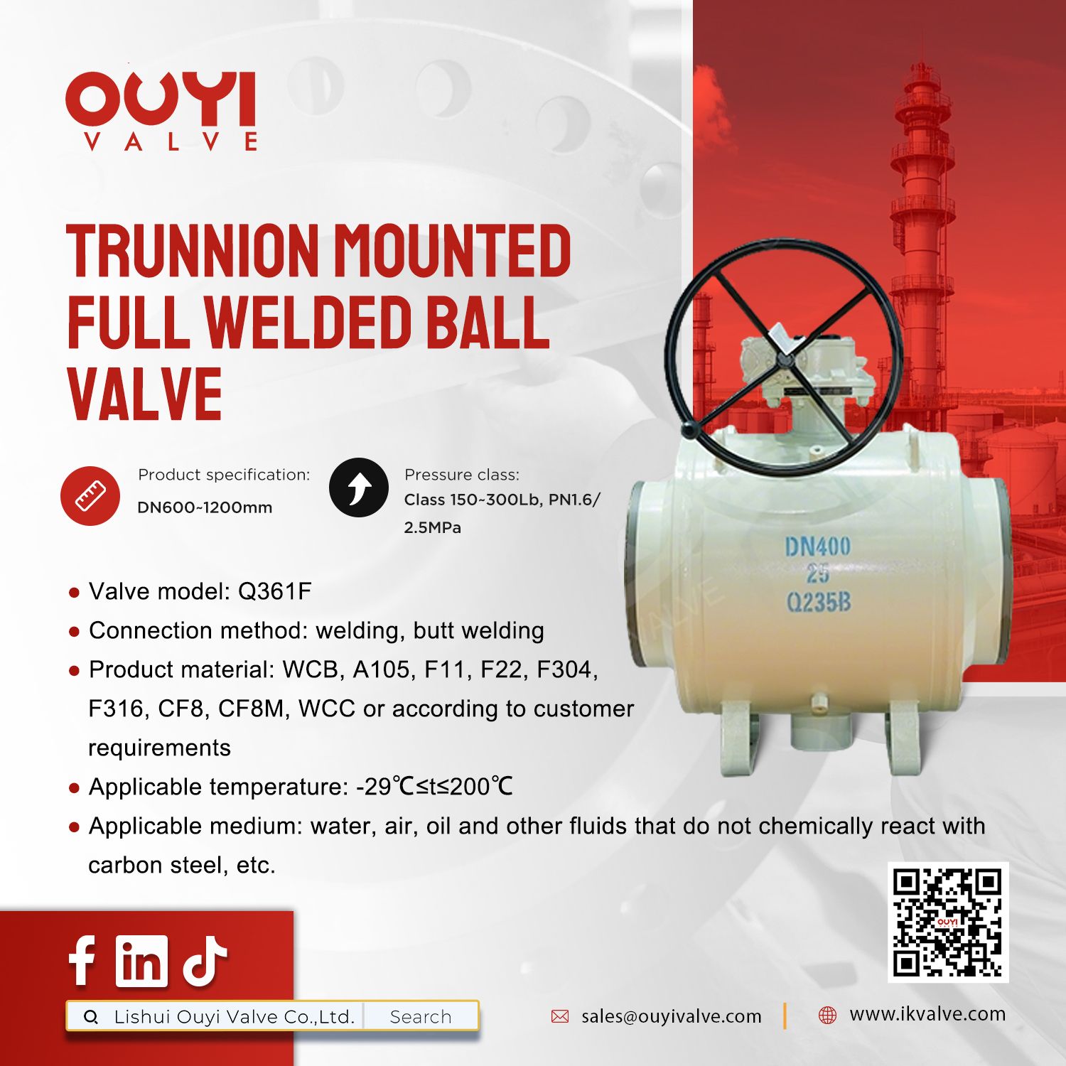 When the demands are extreme, the solution must be absolute. Introducing our Trunnion Mounted Full Welded Ball Valve — built for the highest pressure and strictest sealing requirements. ✔ Full-welded body for zero leakage. ✔ Trunnion mounted design for superior stability. ✔ Custom materials & sizing to match your exact application. Ideal for oil & gas, power generation, and water treatment systems where failure is not an option. Precision in every weld. Reliability in every turn. 📍 Explore more at: sales@ouyivalve.com | www.ikvalve.com #OuyiValve #WeldedBallValve #HighPressureValve #IndustrialSolutions #FluidControl