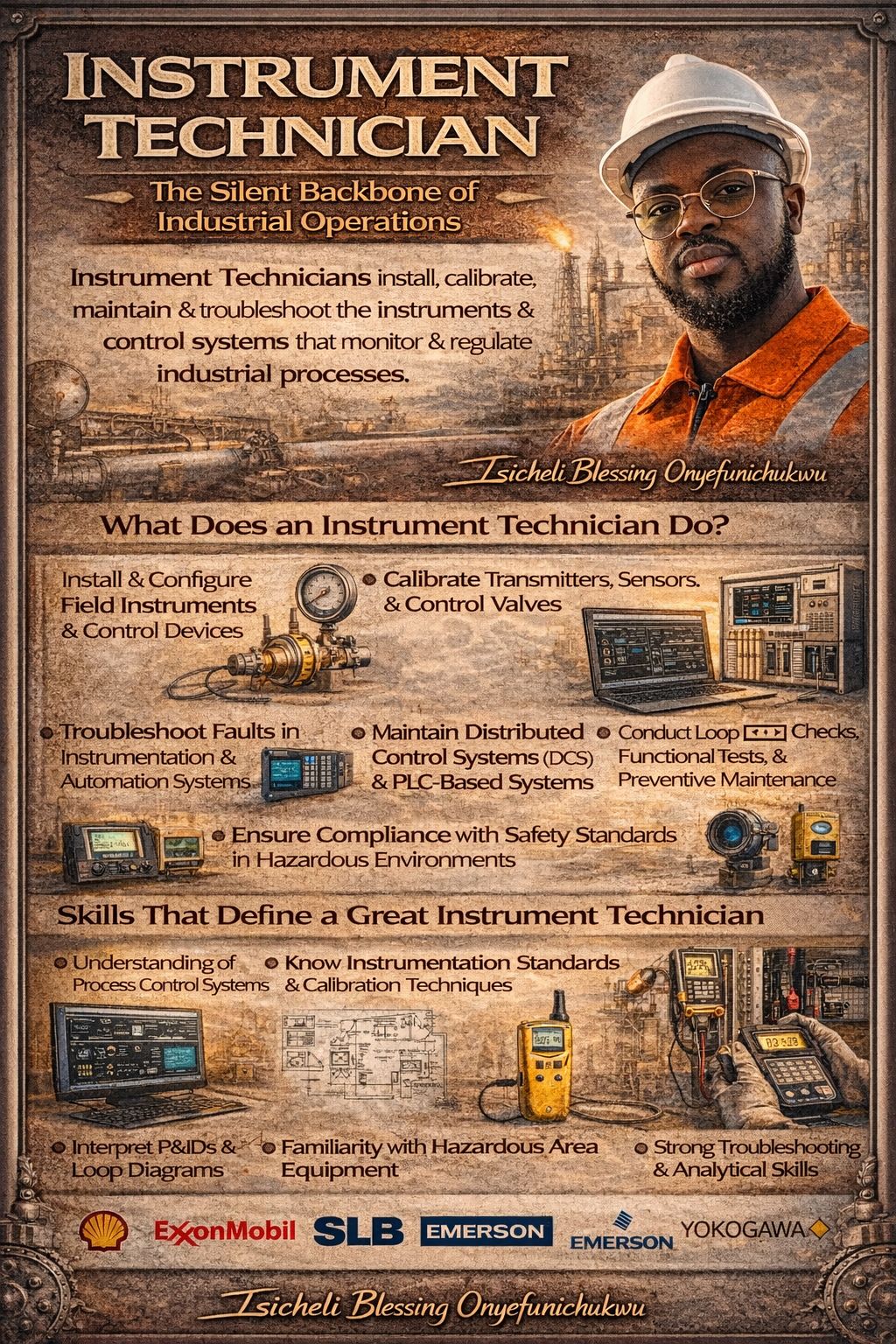 Instrument Technicians: The Silent Backbone of Industrial Operations In industries like oil & gas, petrochemicals, power generation, and manufacturing, precision is everything. Behind the smooth operation of complex systems and processes is a highly skilled professional often working behind the scenes the Instrument Technician. An Instrument Technician is responsible for installing, calibrating, maintaining, and troubleshooting the instruments and control systems that monitor and regulate industrial processes. These instruments measure critical parameters such as pressure, temperature, flow, and level, ensuring that operations remain safe, efficient, and reliable. Without accurate instrumentation, even the most advanced facilities cannot function properly. What they Do? Instrument Technicians play a vital role in maintaining process stability and safety. Their responsibilities typically include: • Installing and configuring field instruments and control devices • Calibrating transmitters, sensors, and control valves • Troubleshooting faults in instrumentation and automation systems • Maintaining Distributed Control Systems (DCS) and PLC-based systems • Conducting loop checks, functional tests, and preventive maintenance • Ensuring compliance with safety standards in hazardous environments These professionals are often found working in refineries, offshore platforms, LNG plants, power stations, and chemical processing facilities. Why Instrument Technicians Are Critical Modern industrial plants rely heavily on automation and real-time monitoring. Instrument Technicians ensure that control systems receive accurate data so operators can make informed decisions. A small error in instrumentation can lead to: • Production downtime • Equipment damage • Safety incidents • Environmental risks Because of this, the work of an Instrument Technician directly contributes to process safety, operational efficiency, and asset reliability. Skills That Define a Great Instrument Technician Successful Instrument Technicians combine technical knowledge with practical problem-solving skills. Key competencies include: • Understanding of process control systems • Knowledge of instrumentation standards and calibration techniques • Ability to interpret P&IDs and loop diagrams • Familiarity with hazardous area equipment • Strong troubleshooting and analytical skills As the industry continues to adopt digital oilfield technologies, automation, and smart sensors, the demand for skilled Instrument Technicians is only growing. In an industry driven by precision and safety, Instrument Technicians are the professionals who ensure every signal, sensor, and system performs exactly as it should. #OilAndGas #Instrumentation #InstrumentTechnician #ProcessControl #Automation #Engineering #IndustrialAutomation #PetroleumEngineering #EnergyIndustry #EngineeringLife #ControlSystems #ProcessEngineering #FieldInstrumentation #OilfieldServices #EnergyProfessionals
