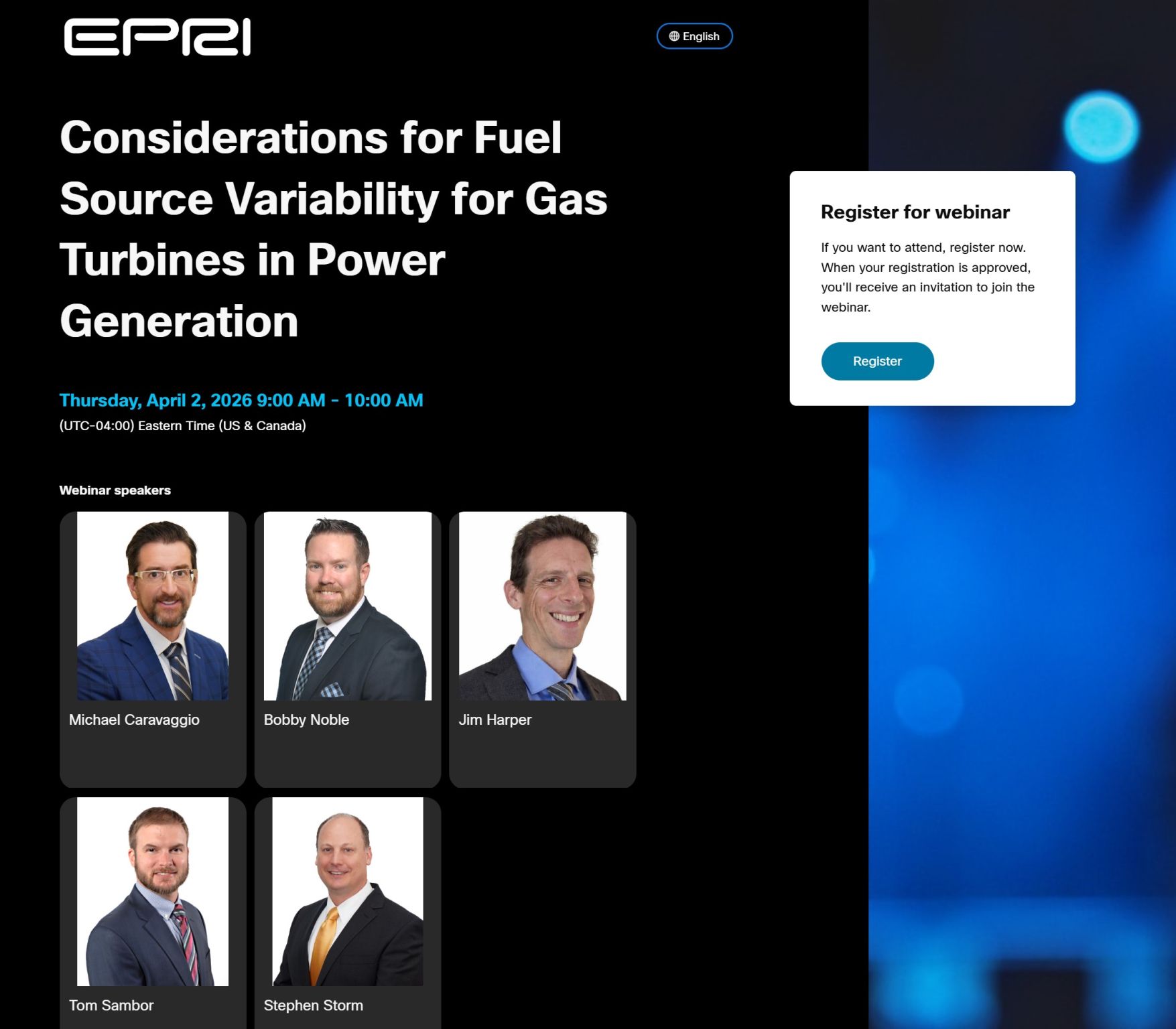 Global fuel supply uncertainty is no longer a theoretical risk—it’s an operational reality. As LNG sourcing shifts, blending increases, and emergency fuel switching becomes more common, gas‑fired assets are being asked to operate outside historical assumptions. EPRI, as part of our mission to help ensure safe, reliable power for society, will be conducting a public webinar to explore how fuel composition variability affects gas turbine operability, emissions, and reliability—and what operators can do today to reduce risk in an increasingly uncertain fuel landscape. 📅 On Thursday April 2, at 9am US Eastern time 📅 'Considerations for Fuel Source Variability for Gas Turbines in Power Generation' Register here: https://lnkd.in/ex6_rzkF Variations in LNG composition, C₂+ content, and inerts can quietly erode operating margins—impacting startup reliability, combustion dynamics, emissions, and long‑term hardware life. In this webinar, we’ll unpack what fuel interchangeability actually means for gas turbines and how to manage risk as global fuel uncertainty becomes the norm. Bobby Noble, James Harper, Tom Sambor, P.E., Stephen Storm, EPRI