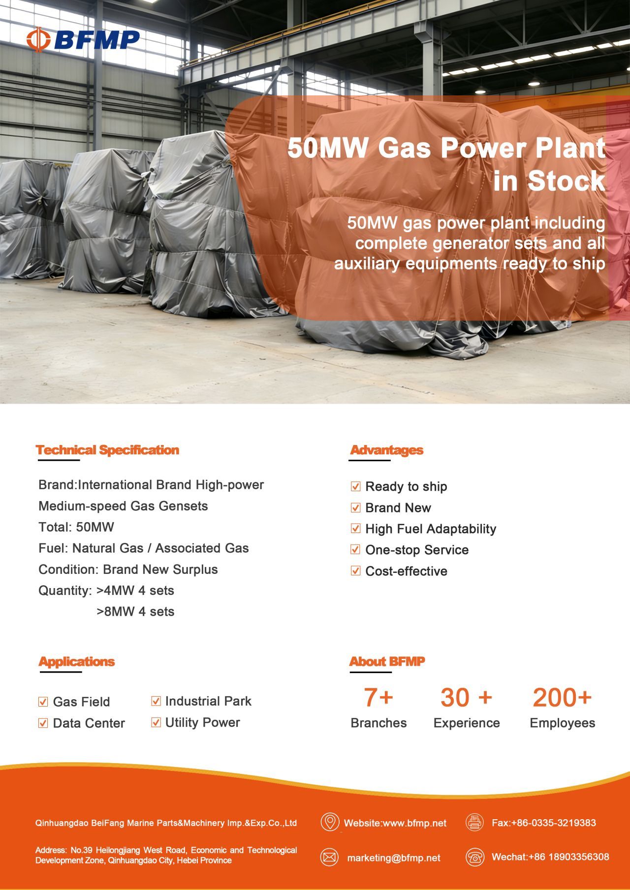 Title: 50MW Gas Power Plant (Complete Package Sale) – Ready Stock! -Brand: World-renowned high-power medium-speed gas engines, single unit power >4MW - Condition: In stock, ready for immediate delivery - Included: